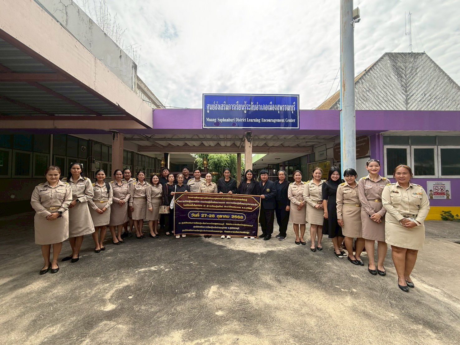 ในวันที่ 27 ตุลาคม 2568 นางปกาวรรณ เทียบฤทธิ์ ผู้อำนวยการ สกร.ระดับอำเภอเมืองสุพรรณบุรี พร้อมด้วยบุคลากร สกร.ระดับอำเภอเมืองสุพรรณบุรี ให้การต้อนรับคณะศึกษาดูงานแลกเปลี่ยนเรียนรู้ จาก สกร.ระดับอำเภอสอยดาว จังหวัดจันทบุรี นำโดยนางสาวดลฤทัย เเซ่ลี้ ครู รักษาการในตำแหน่ง ผอ.สกร.ระดับอำเภอสอยดาว
