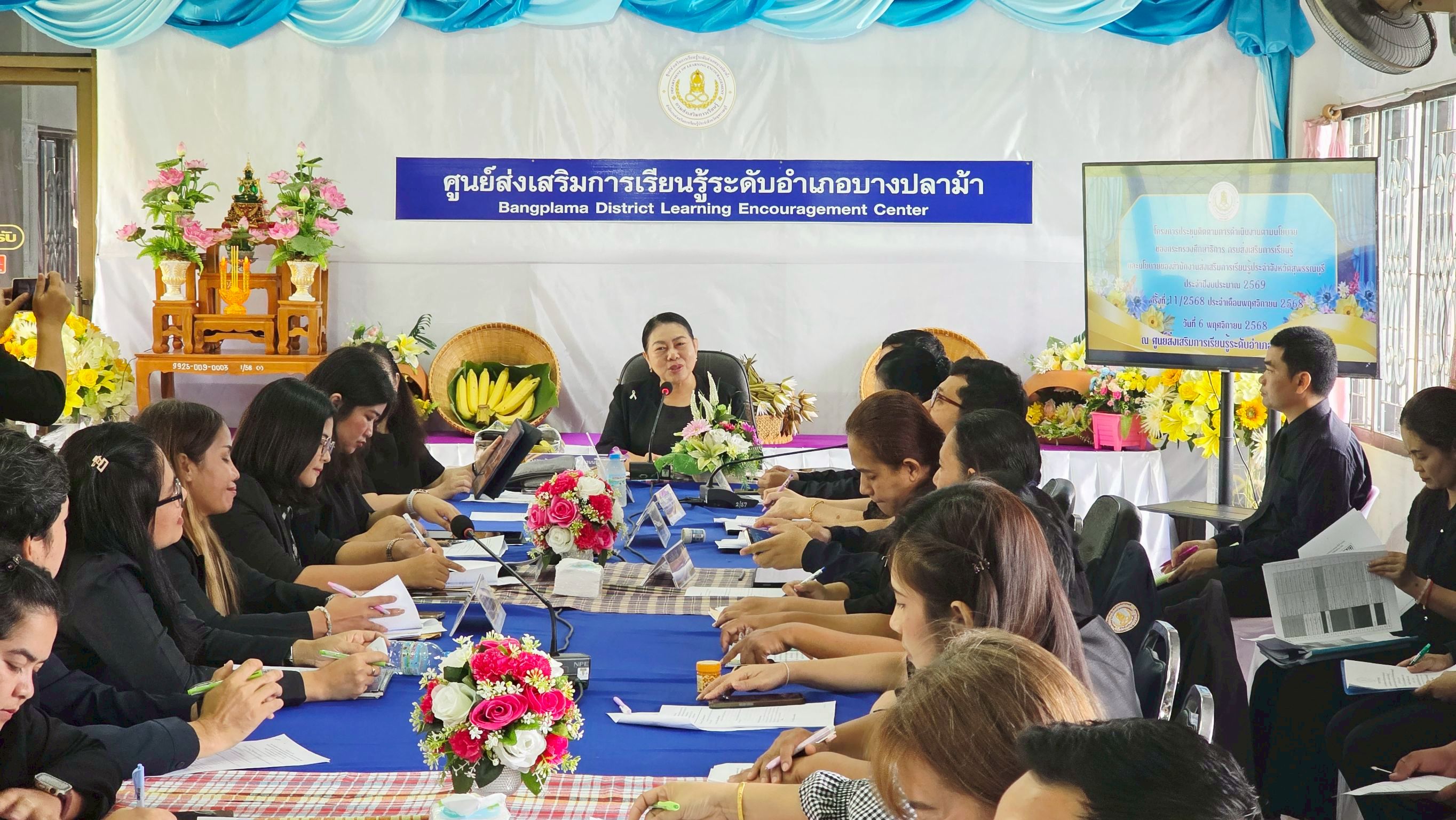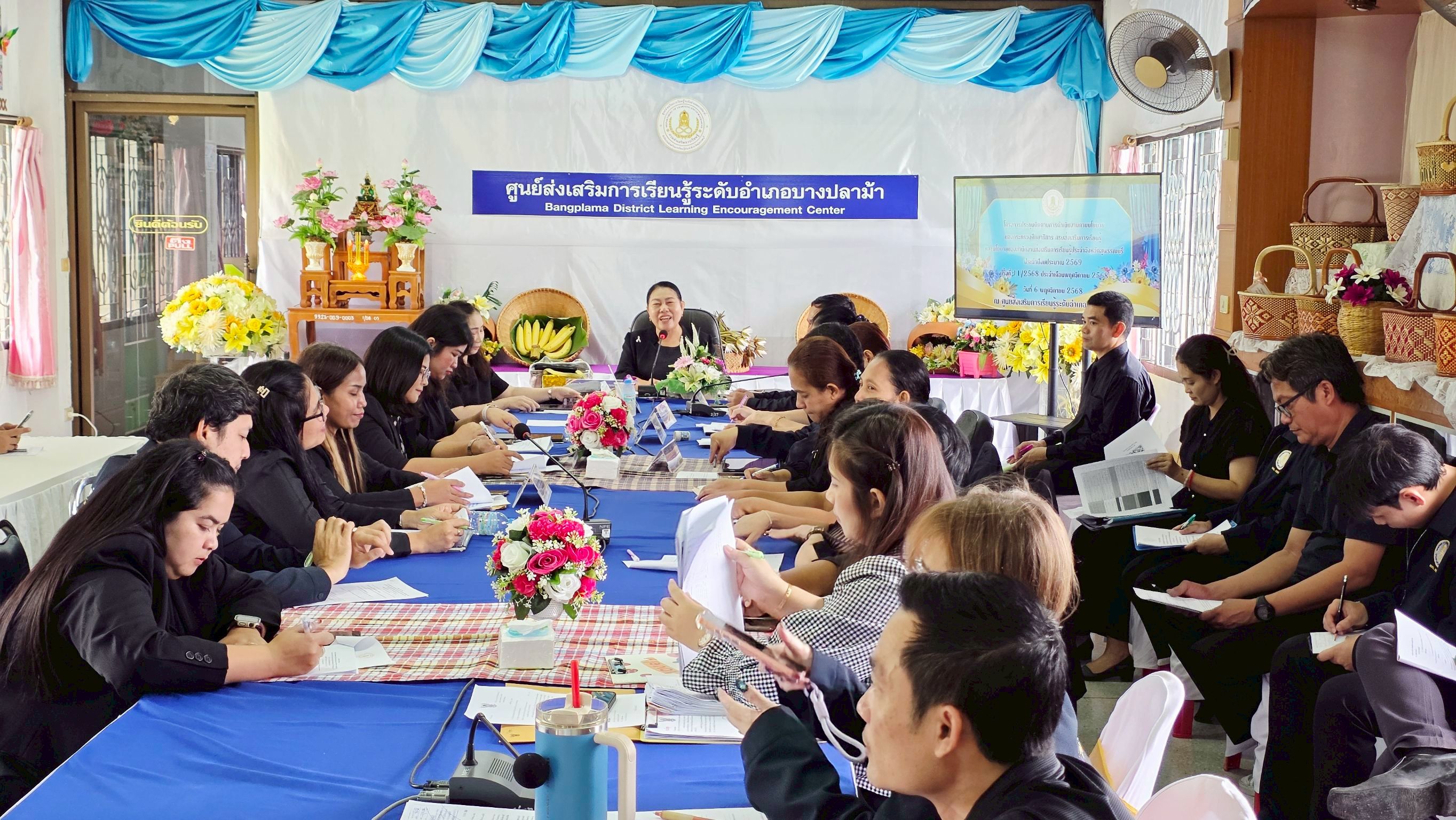 ในวันที่ 6 พฤศจิกายน 2568 นางปกาวรรณ เทียบฤทธิ์ ผู้อำนวยการ สกร.ระดับอำเภอเมืองสุพรรณบุรี พร้อมด้วย บุคลากร สกร.ระดับอำเภอเมืองสุพรรณบุรี เข้าร่วมโครงการประชุมติดตามการดำเนินงาน ตามนโยบายของกระทรวงศึกษาธิการ กรมส่งเสริมการเรียนรู้และสำนักงาน สกร.ประจำจังหวัดสุพรรณบุรี ประจำเดือนพฤศจิกายน 2568 ณ ห้องประชุม สกร.ระดับอำเภอบางปลาม้า