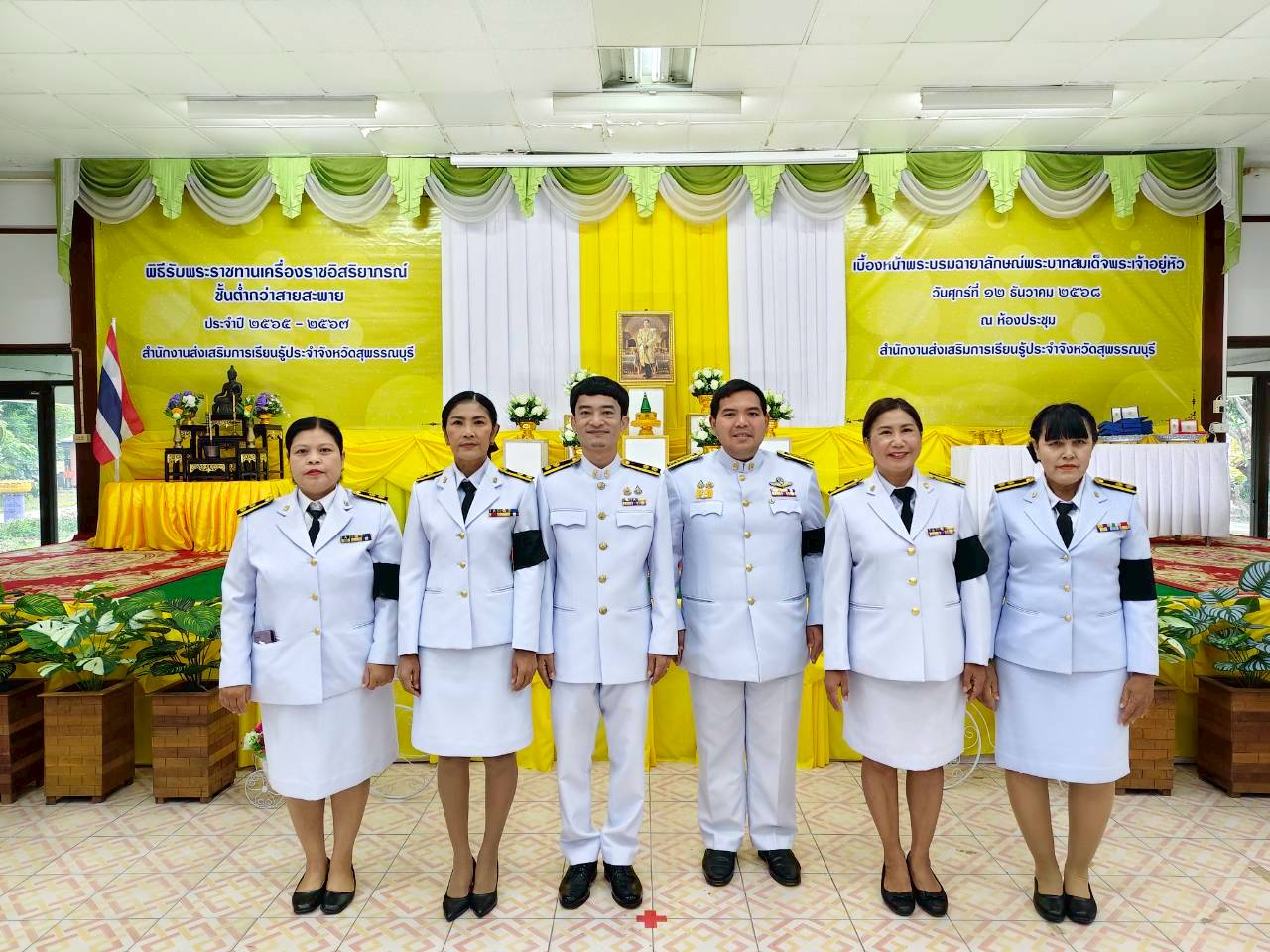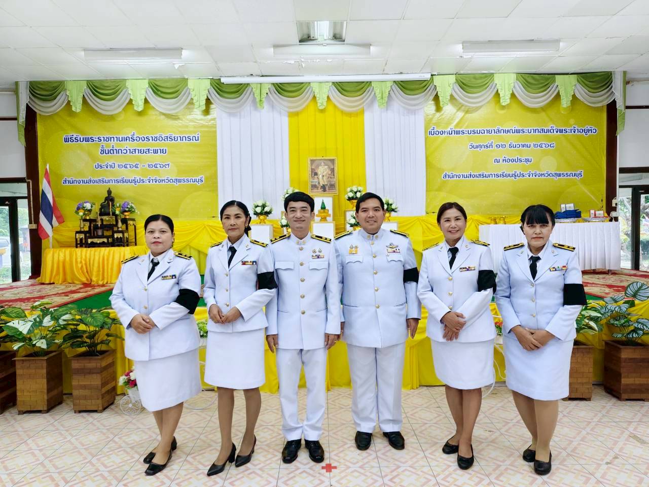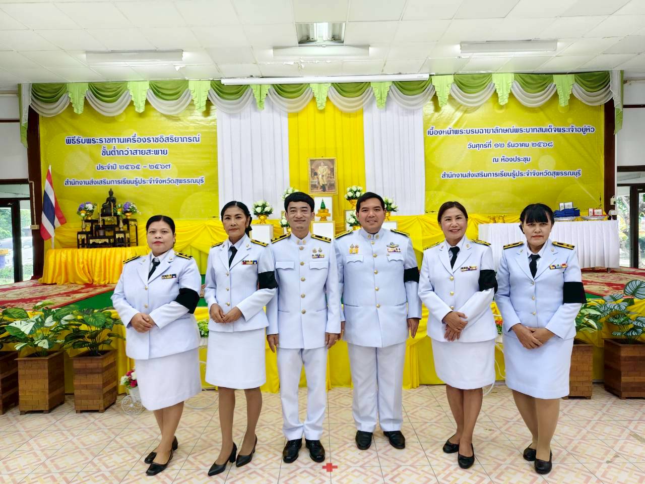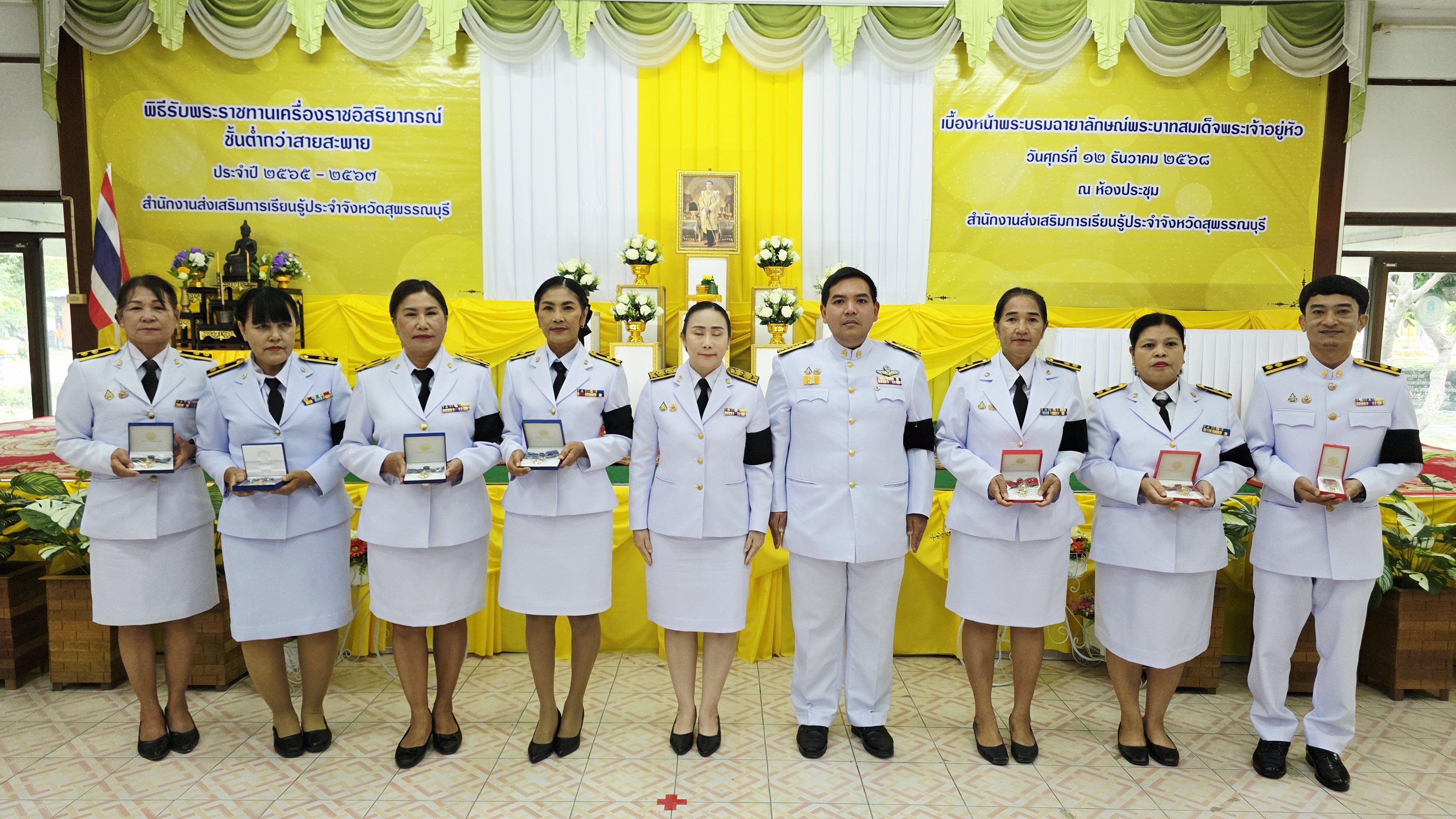 ในวันที่ 12 ธันวาคม 2568 เวลา 9.00 น. นางปกาวรรณ เทียบฤทธิ์ ผู้อำนวยการ สกร.ระดับอำเภอเมืองสุพรรณบุรี พร้อมด้วยบุคลากร สกร.ระดับอำเภอเมืองสุพรรณบุรี เข้าร่วมพิธีรับพระราชทานเครื่องราชอิสริยาภรณ์ ชั้นต่ำกว่าสายสะพาย ประจำปี 2565-2567 เบื้องหน้าพระบรมฉายาลักษณ์พระบาทสมเด็จพระเจ้าอยู่หัว ณ ห้องประชุมสำนักงาน สกร.ประจำจังหวัดสุพรรณบุรี