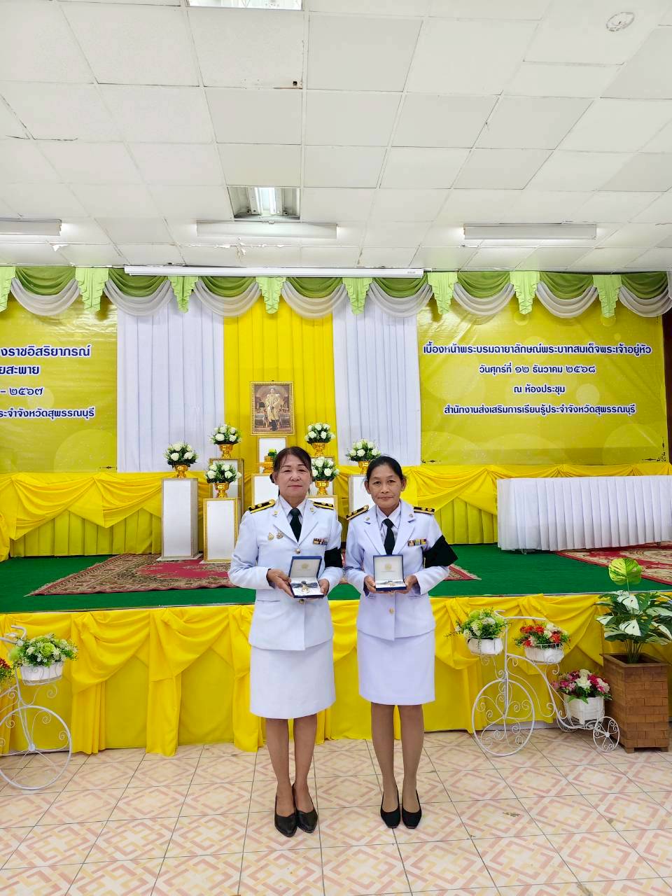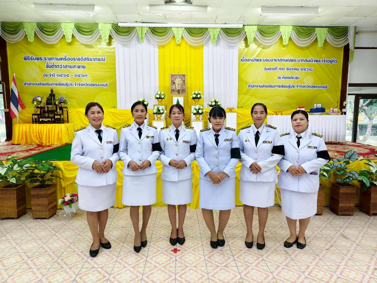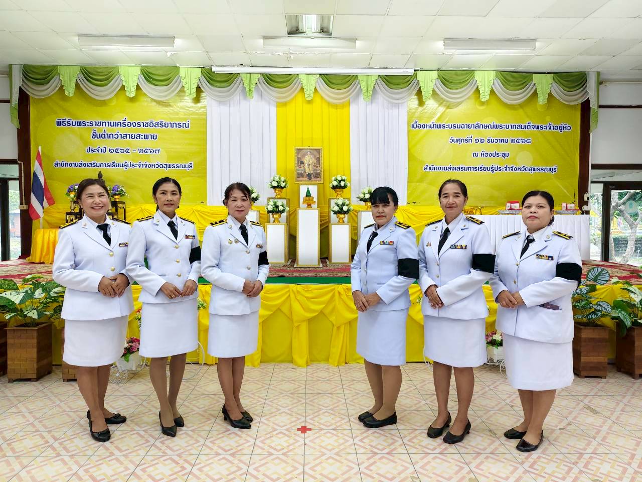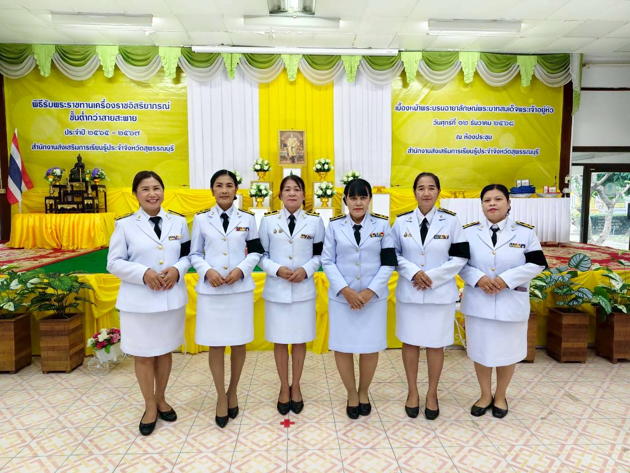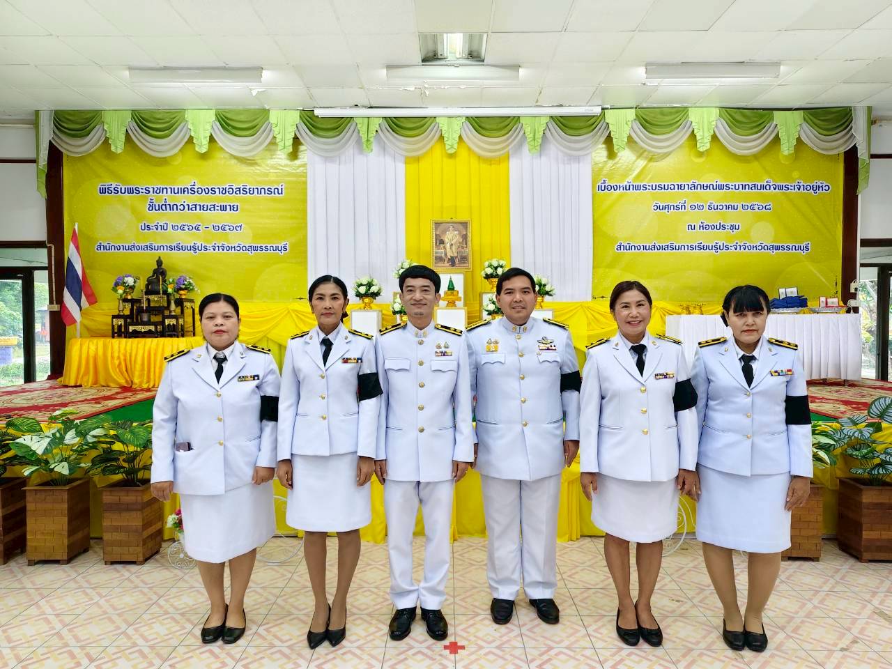 ในวันที่ 12 ธันวาคม 2568 เวลา 9.00 น. นางปกาวรรณ เทียบฤทธิ์ ผู้อำนวยการ สกร.ระดับอำเภอเมืองสุพรรณบุรี พร้อมด้วยบุคลากร สกร.ระดับอำเภอเมืองสุพรรณบุรี เข้าร่วมพิธีรับพระราชทานเครื่องราชอิสริยาภรณ์ ชั้นต่ำกว่าสายสะพาย ประจำปี 2565-2567 เบื้องหน้าพระบรมฉายาลักษณ์พระบาทสมเด็จพระเจ้าอยู่หัว ณ ห้องประชุมสำนักงาน สกร.ประจำจังหวัดสุพรรณบุรี