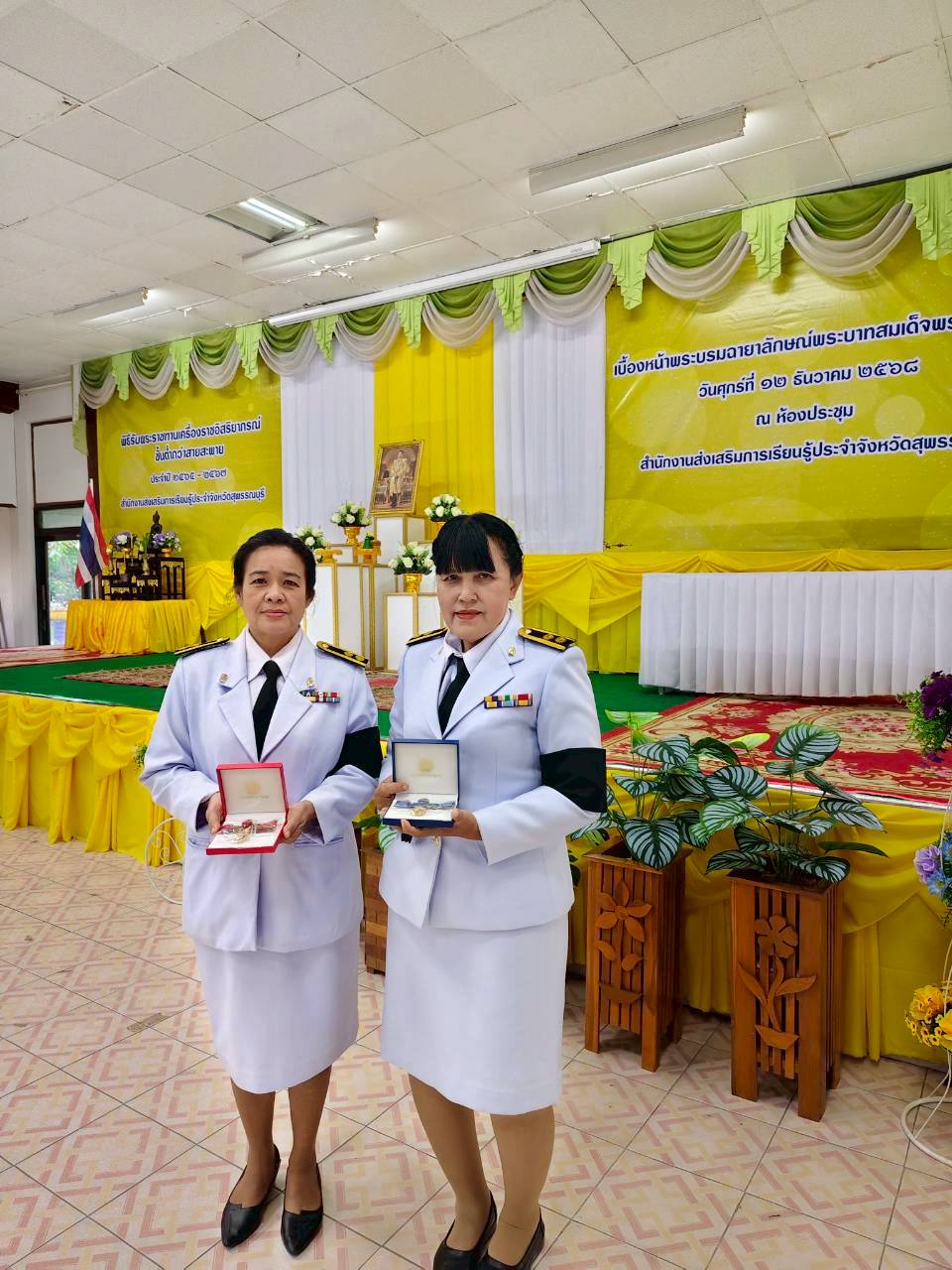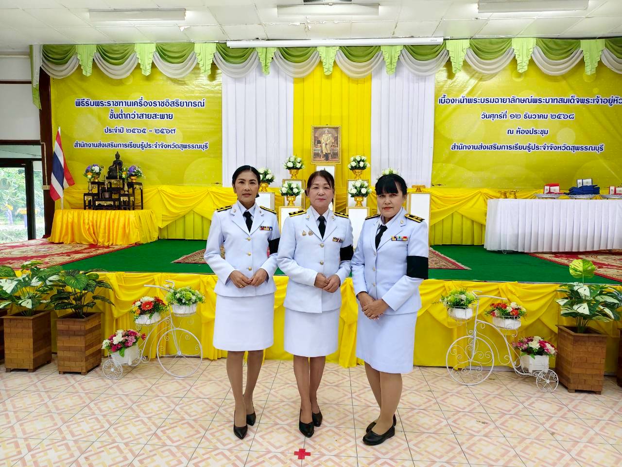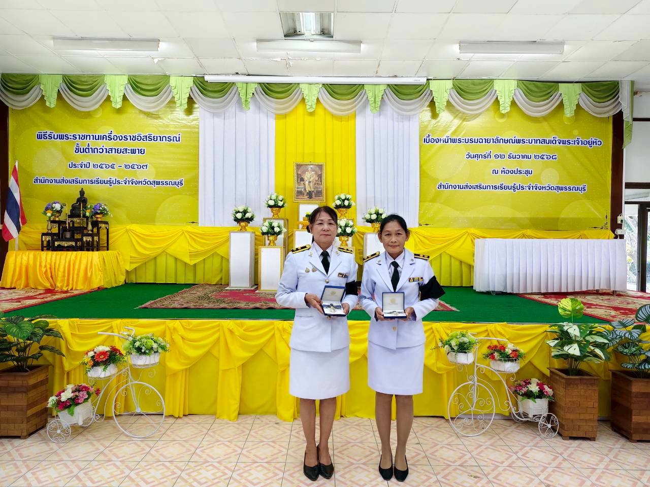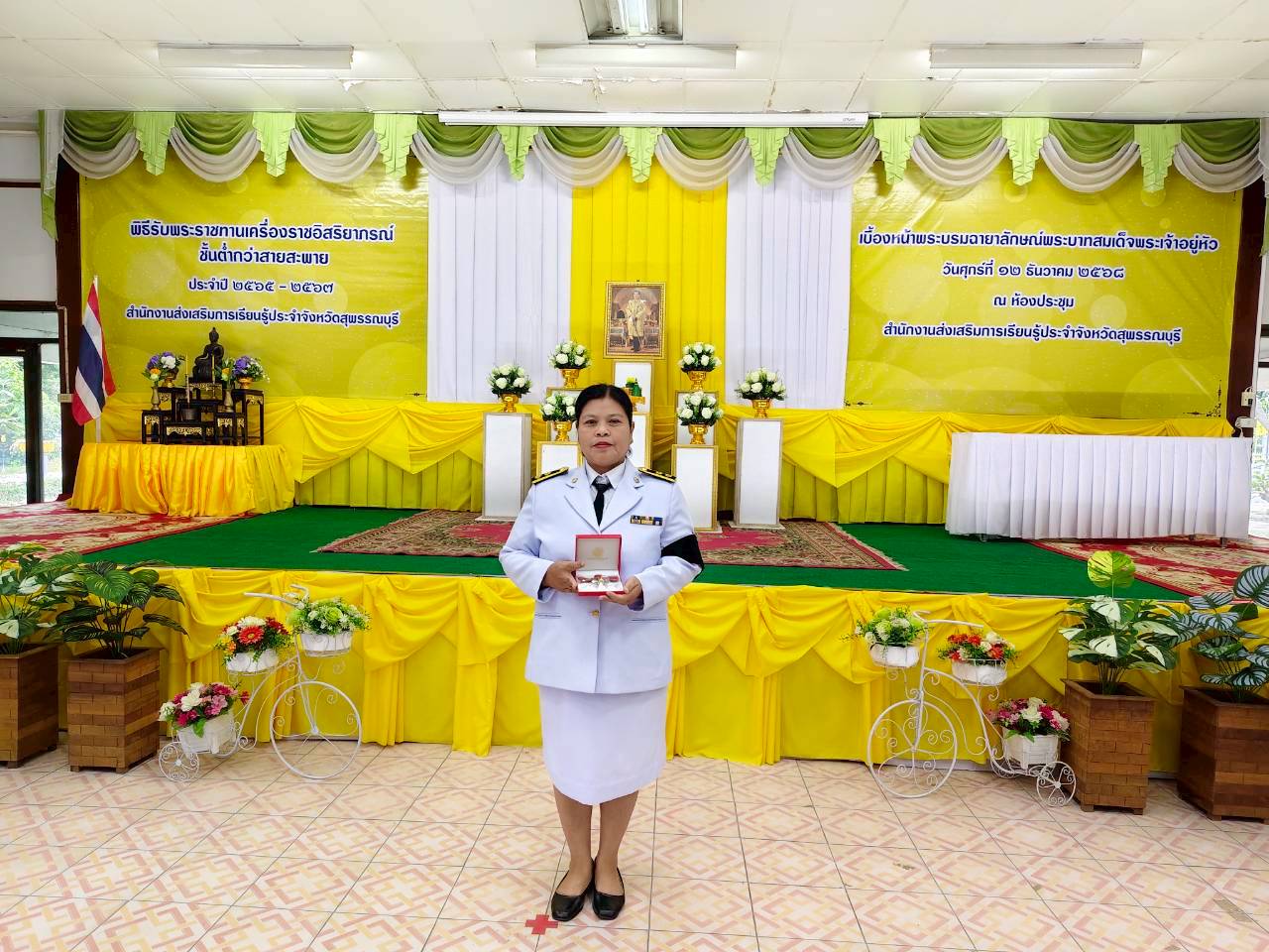 ในวันที่ 12 ธันวาคม 2568 เวลา 9.00 น. นางปกาวรรณ เทียบฤทธิ์ ผู้อำนวยการ สกร.ระดับอำเภอเมืองสุพรรณบุรี พร้อมด้วยบุคลากร สกร.ระดับอำเภอเมืองสุพรรณบุรี เข้าร่วมพิธีรับพระราชทานเครื่องราชอิสริยาภรณ์ ชั้นต่ำกว่าสายสะพาย ประจำปี 2565-2567 เบื้องหน้าพระบรมฉายาลักษณ์พระบาทสมเด็จพระเจ้าอยู่หัว ณ ห้องประชุมสำนักงาน สกร.ประจำจังหวัดสุพรรณบุรี