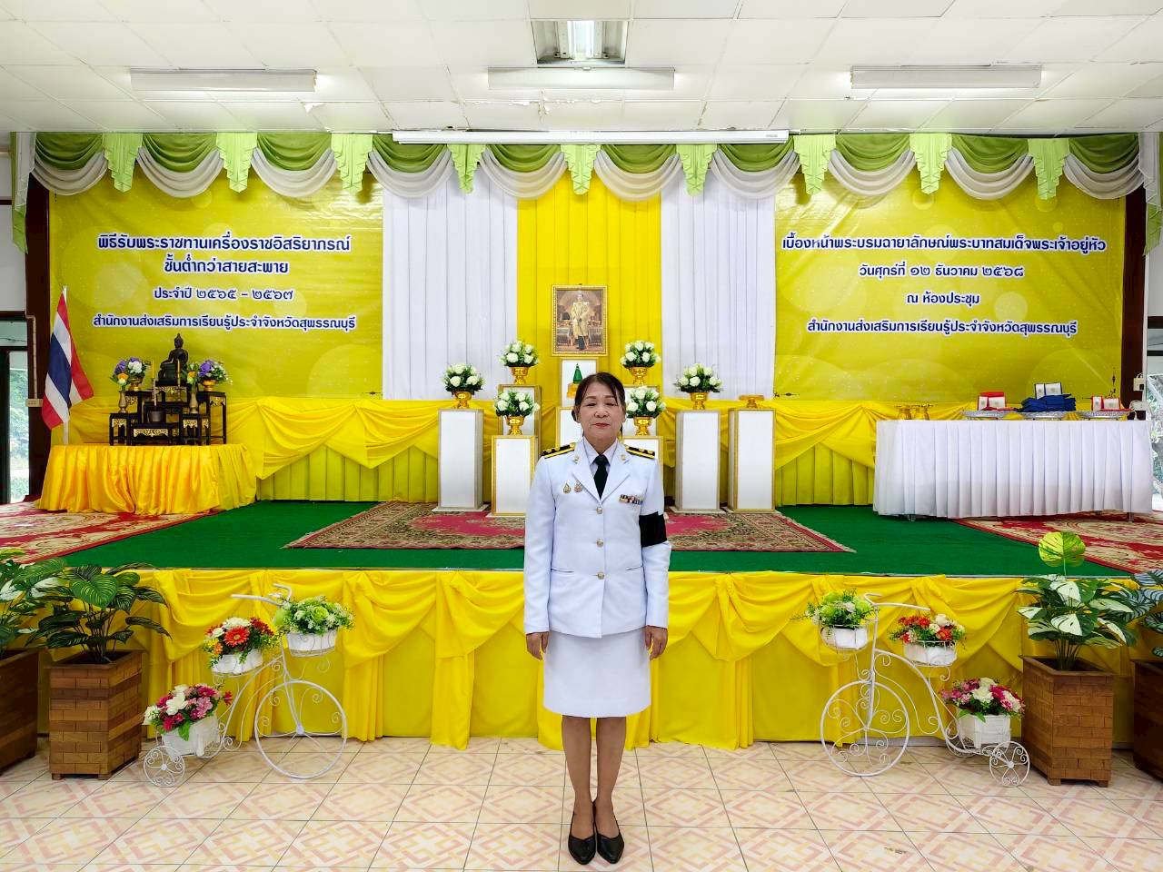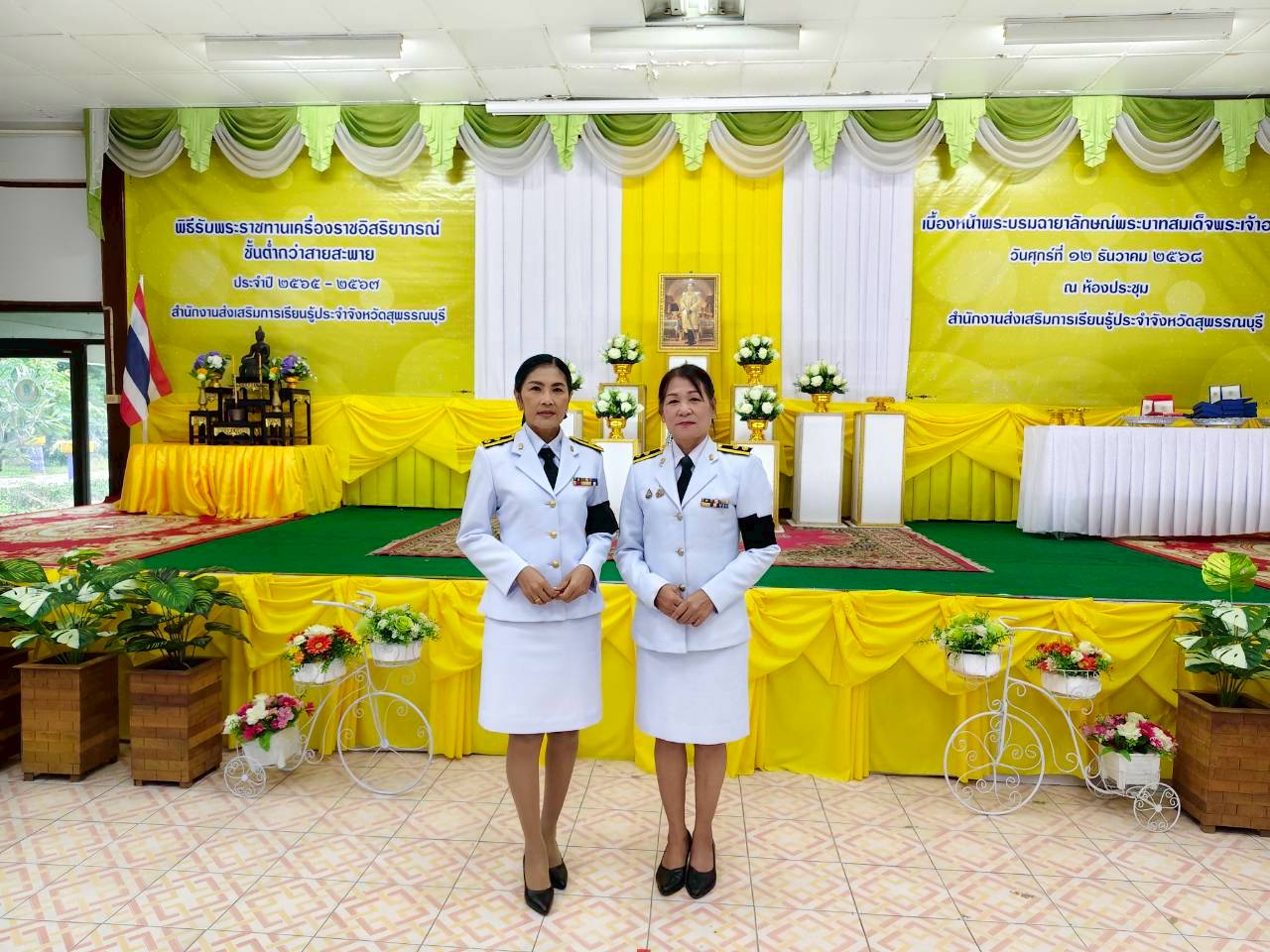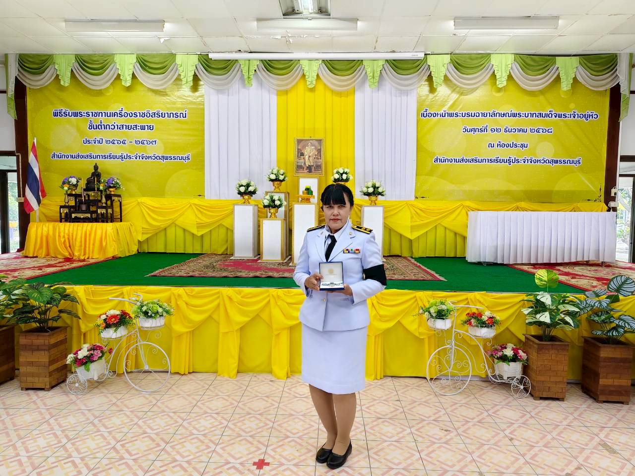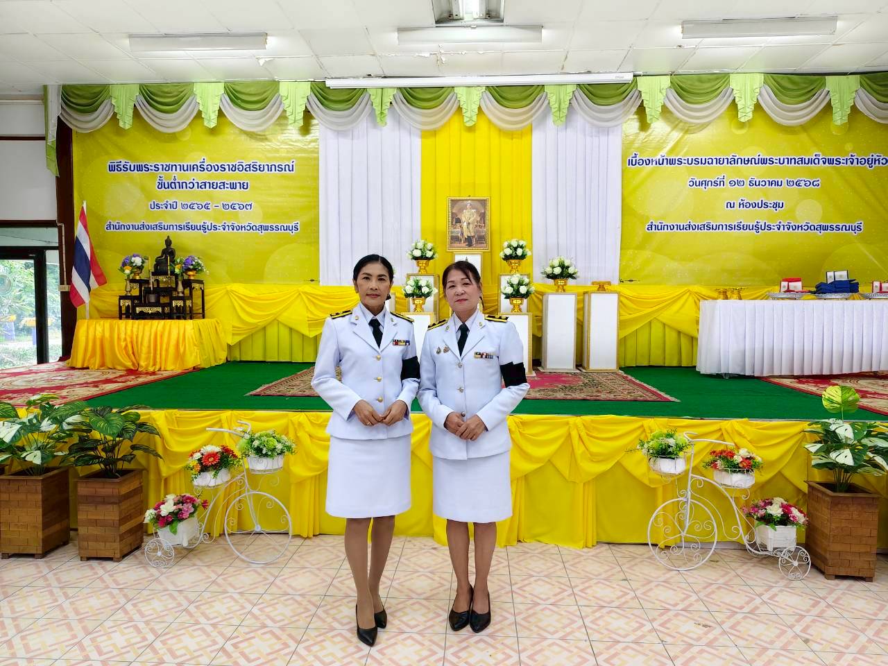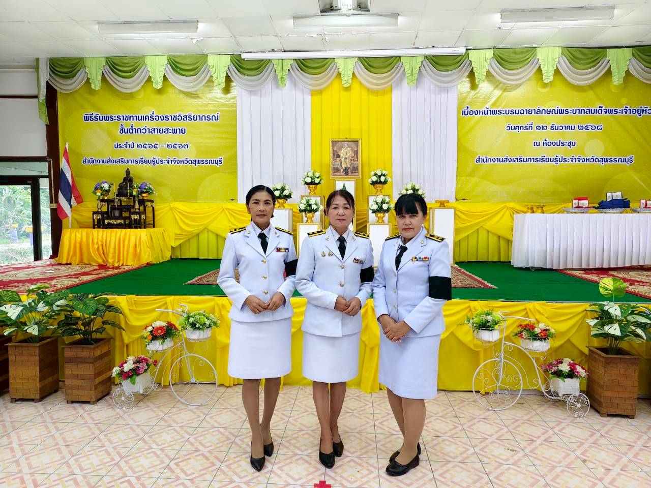ในวันที่ 12 ธันวาคม 2568 เวลา 9.00 น. นางปกาวรรณ เทียบฤทธิ์ ผู้อำนวยการ สกร.ระดับอำเภอเมืองสุพรรณบุรี พร้อมด้วยบุคลากร สกร.ระดับอำเภอเมืองสุพรรณบุรี เข้าร่วมพิธีรับพระราชทานเครื่องราชอิสริยาภรณ์ ชั้นต่ำกว่าสายสะพาย ประจำปี 2565-2567 เบื้องหน้าพระบรมฉายาลักษณ์พระบาทสมเด็จพระเจ้าอยู่หัว ณ ห้องประชุมสำนักงาน สกร.ประจำจังหวัดสุพรรณบุรี
