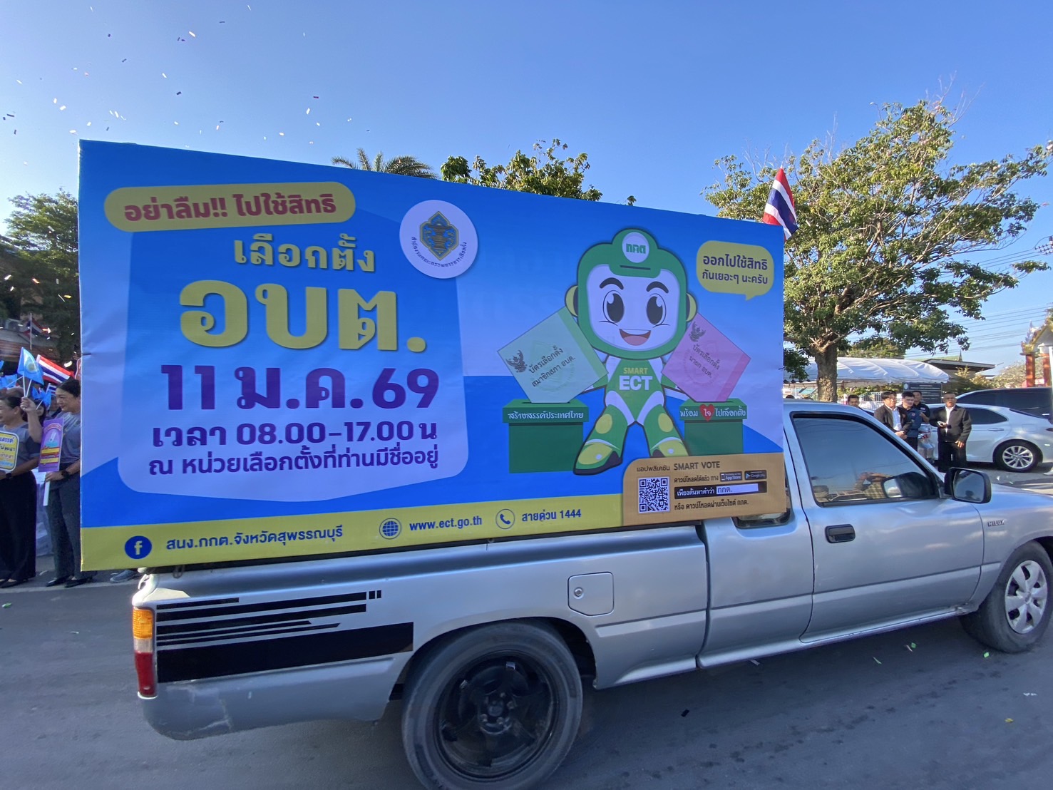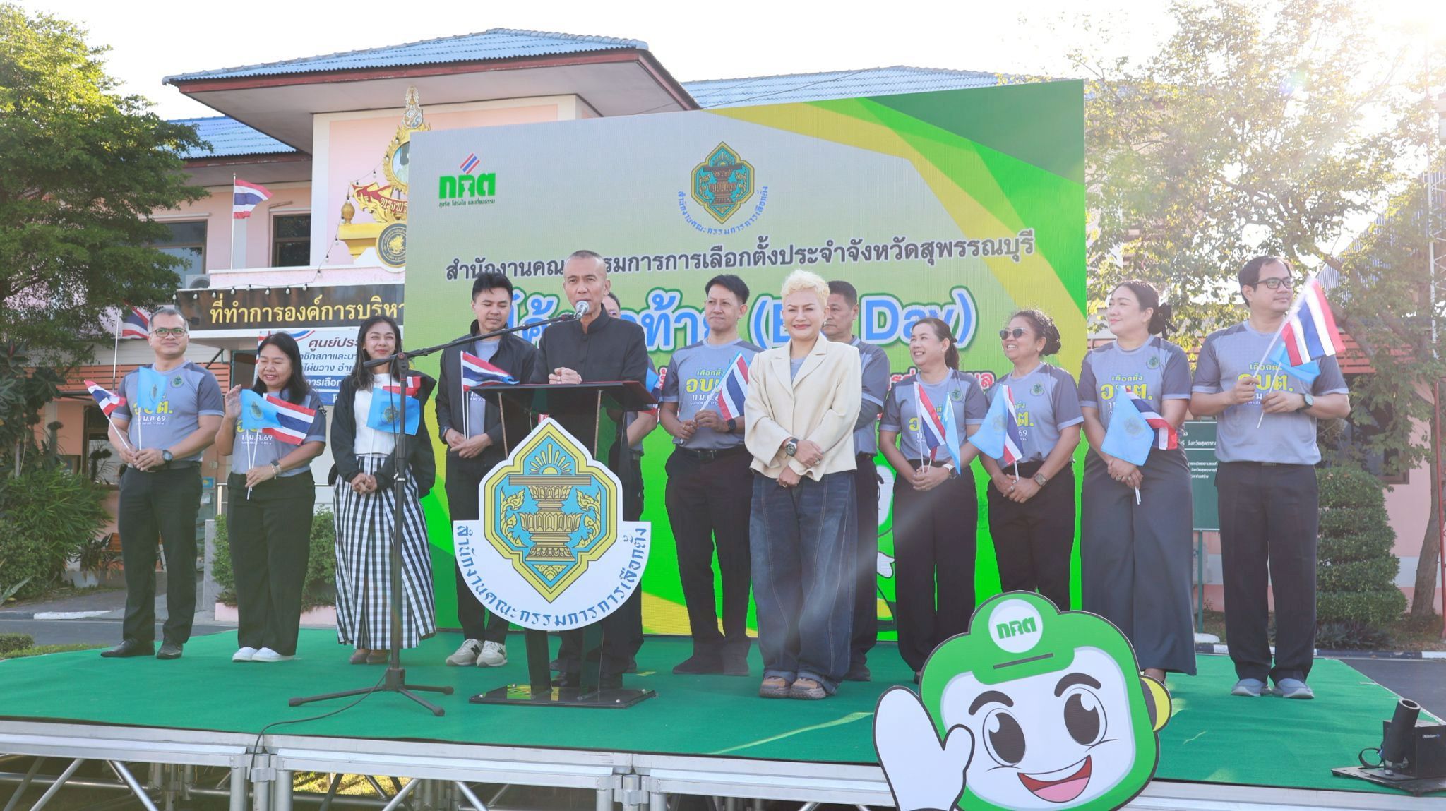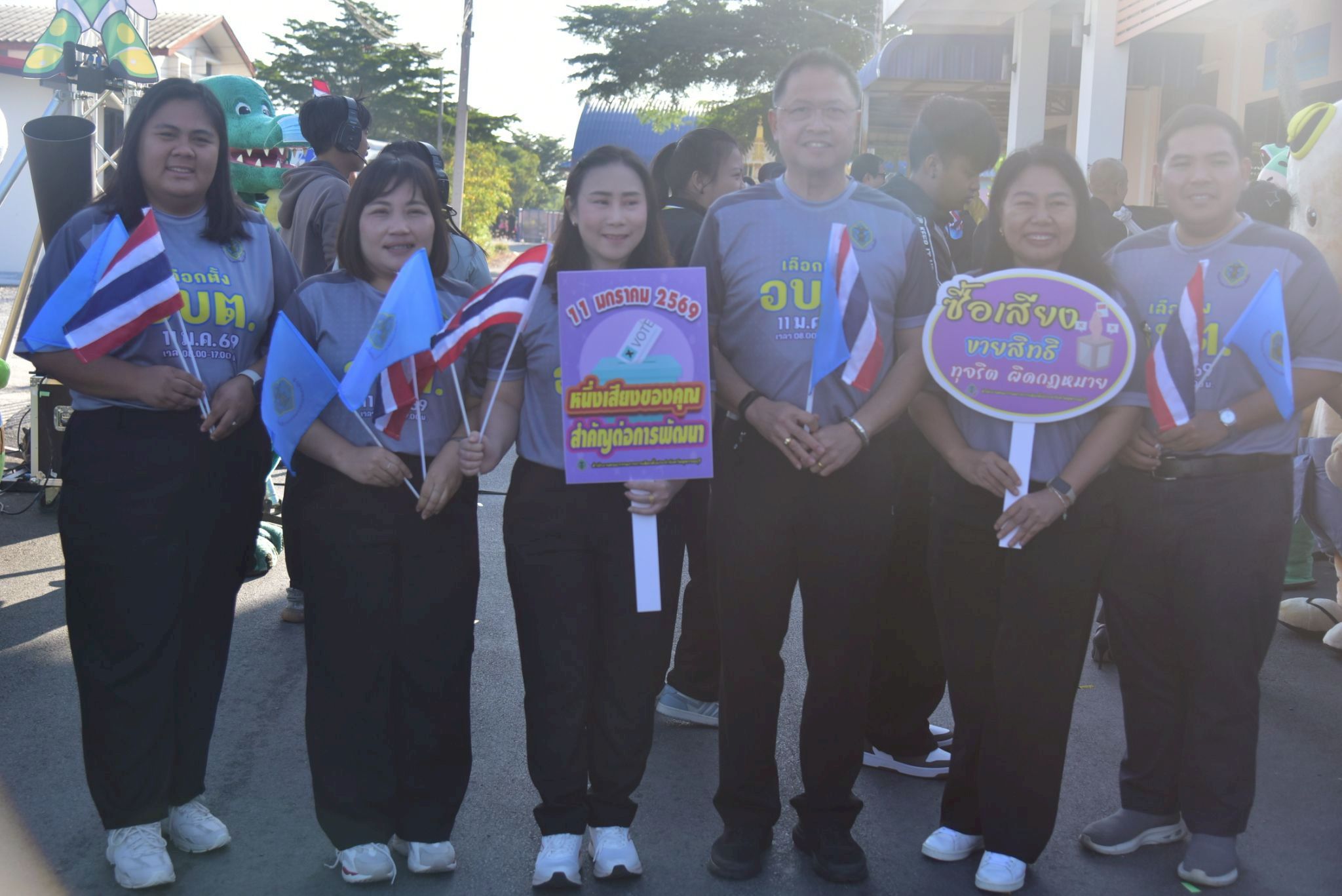 ในวันที่ 8 มกราคม 2569 เวลา 07.30 น. นางปกาวรรณ เทียบฤทธิ์ ผู้อำนวยการ สกร.ระดับอำเภอเมืองสุพรรณบุรี พร้อมด้วยบุคลากร สกร.ระดับอำเภอเมืองสุพรรณบุรี เข้าร่วมกิจกรรมโค้งสุดท้าย (Big-Day)รณรงค์ประชาสัมพันธ์เชิญชวนไปใช้สิทธิ์เลือกตั้งสมาชิกสภาองค์การบริหารส่วนตำบล (อบต.) และนายกองค์การบริหารส่วนตำบล ณ องค์การบริหารส่วนตำบลไผ่ขวาง อำเภอเมืองสุพรรณบุรี จังหวัดสุพรรณบุรี