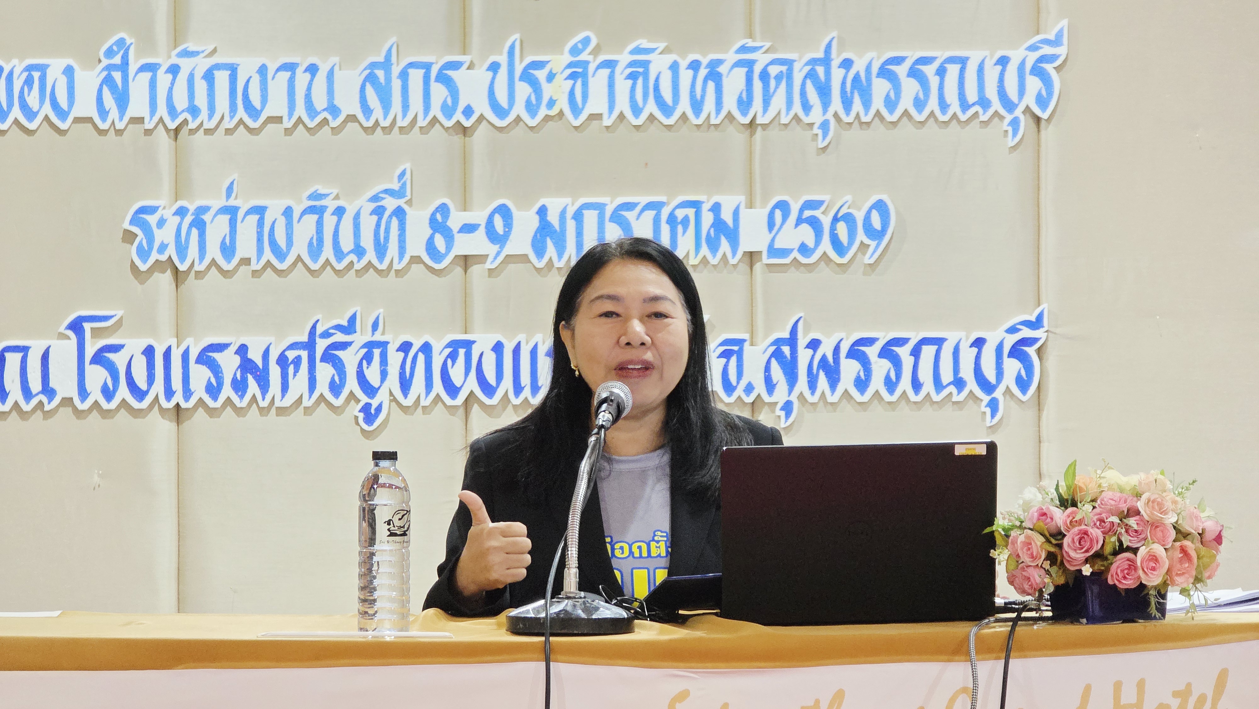 ณ โรงแรมศรีอู่ทองเเกรนด์ อำเภอเมืองสุพรรณบุรี จังหวัดสุพรรณบุรี โดยมีนางสาวจันทร์ทิพย์ สินธุวงษานนท์ ผอ.สกร.ประจำจังหวัดสุพรรณบุรี เป็นประธาน