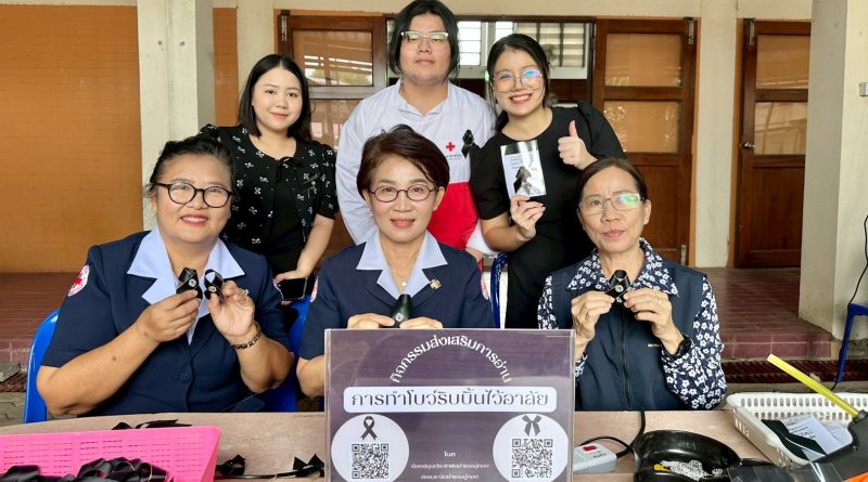 จัดกิจกรรมส่งเสริมการอ่านเคลื่อนที่ กิจกรรมส่งเสริมการเรียนรู้สร้างสรรค์ การจัดทำงานประดิษฐ์ “ริบบิ้นสีดำ” ติดเสื้อ