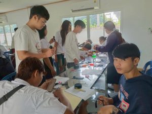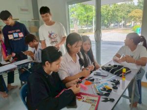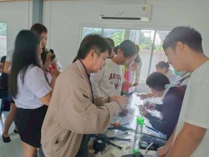 นายสมศักดิ์ ทองแถม ครูศูนย์การเรียนรู้ จัดกิจกรรมส่งเสริมการอ่านเคลื่อนที่ กิจกรรมส่งเสริมการเรียนรู้สร้างสรรค์ การจัดทำงานประดิษฐ์ “ริบบิ้นสีดำ” ติดเสื้อ