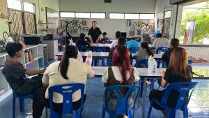 นางสาวจนรรจ์ ฉายวงษ์ ครูศูนย์การเรียนรู้ จัดกิจกรรมการเรียนการสอน และกิจกรรมส่งเสริมการอ่านใน ศกร.ระดับตำบล การทำโบว์ริบบิ้นไว้อาลัย