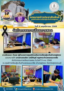 นางชิดชนก กังแฮ ผู้อำนวยการศูนย์ส่งเสริมการเรียนรู้ระดับอำเภออู่ทอง มอบหมายให้ นางสาวเจนจิรา มณีกัญย์ ครูศกร.ตำบลดอนมะเกลือ จัดกิจกรรมการเรียนการสอน ในวันที่ 9 พ.ย 2568 ณ ศูนย์การเรียนรู้ระดับตำบลดอนมะเกลือ อำเภออู่ทอง จังหวัดสุพรรณบุรี