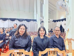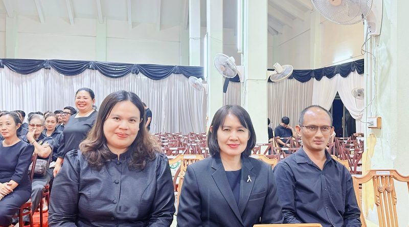 นางชิดชนก กังแฮ ผู้อำนวยการ สกร.ระดับอำเภออู่ทอง พร้อมด้วย นายวิโรจน์ แย้มอุทัย และนางสาวปิยะนุช ศรนุวัตร ร่วมพิธีสวดพระอภิธรรม อุทิศถวายพระราชกุศลแด่