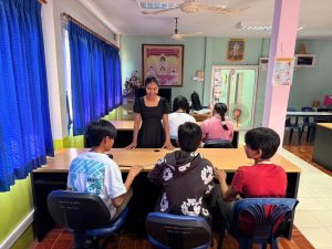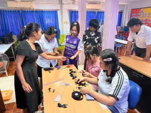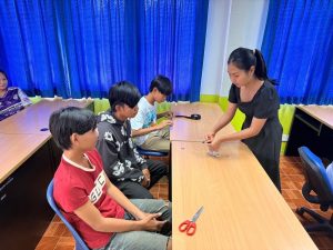นางสาวเจนจิรา มณีกัญย์ ครู ศกร.ตำบลดอนมะเกลือ จัดกิจกรรมการเรียนการสอนและทำโบว์ริบบิ้น