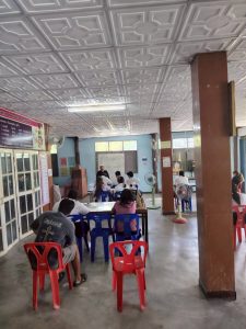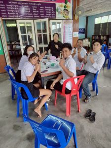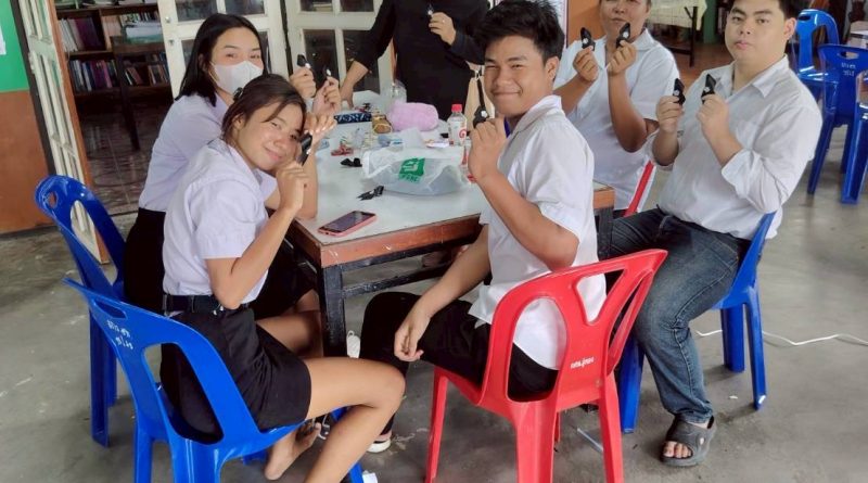 นางสาวสมประสงค์ ศรีหว้าสระสม ครูศูนย์การเรียนรู้ จัดกิจกรรมการเรียนการสอนและทำโบว์ริบบิ้นน้อมรำลึก