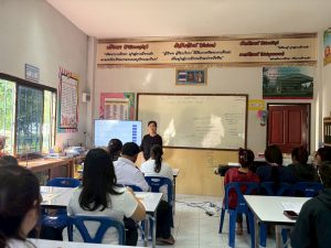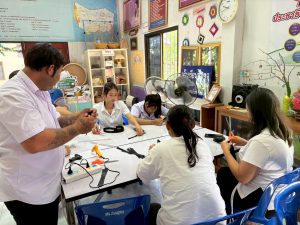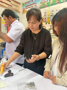 นางสาวทิวาพร มูลละออง ครูศูนย์การเรียนรู้ จัดกิจกรรมการเรียนการสอนและทำโบว์ริบบิ้นน้อมรำลึก