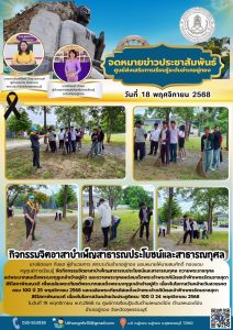 มอบหมายให้นายสมศักดิ์ ทองแถม ครูศูนย์การเรียนรู้ จัดกิจกรรมจิตอาสาบำเพ็ญสาธารณประโยชน์และสาธารณกุศล ถวายพระราชกุศลแด่พระบาทสมเด็จพระมงกุฎเกล้าเจ้าอยู่หัว และถวายพระกุศลแด่สมเด็จพระเจ้าพระภคินีเธอเจ้าฟ้าเพชรรัตนราชสุดาสิริโสภาพัณณวดี เพื่อเฉลิมพระเกียรติพระบาทสมเด็จพระมงกุฎเกล้าเจ้าอยู่หัว เนื่องในโอกาสวันคล้ายวันสวรรคตครบ 100 ปี 25 พฤศจิกายน 2568 และเฉลิมพระเกียรติสมเด็จเจ้าพระเจ้าภคินีเธอเจ้าฟ้าเพชรรัตนราชสุดา สิริโสภาพัณณวดี เนื่องในโอกาสวันคล้ายวันประสูติครบ 100 ปี 24 พฤศจิกายน 2568 (วันพุธ) ในวันที่ 19 พฤศจิกายน พ.ศ.2568 ณ ศูนย์การเรียนรู้ระดับตำบลหนองโอ่ง ตำบลหนองโอ่ง อำเภออู่ทอง จังหวัดสุพรรณบุรี