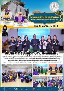 นางชิดชนก กังแฮ ผู้อำนวยการศูนย์ส่งเสริมการเรียนรู้ระดับอำเภออู่ทอง มอบหมายให้นางสาวทิวาพร มูลละออง และนางสาวสาวิตรี ปทุมสูติ ครูศูนย์การเรียนรู้ เข้าร่วมการปฐมนิเทศโรงเรียนผู้สูงอายุตำบลพลับพลาไชย ปีงบประมาณ 2569 เพื่อแนะนำหลักสูตรที่จะดำเนินการจัดการเรียนการสอนสำหรับผู้สูงอายุฯ ในวันที่ 19 พฤศจิกายน 2568 ณ อาคารโรงเรียนผู้สูงอายุตำบลพลับพลาไชย อำเภออู่ทอง จังหวัดสุพรรณบุรี