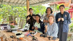 น.ส.กรรภิรมย์ ทัศนสุวรรณ บรรณารักษ์ ร่วมกับ น.ส.บุณฑริก นาคศรีโภชน์ ครูศูนย์การเรียนรู้ และ น.ส.จนรรจ์ ฉายวงษ์ ครูศูนย์การเรียนรู้ จัดกิจกรรมส่งเสริมการอ่านเคลื่อนที่ กิจกรรมส่งเสริมการเรียนรู้สร้างสรรค์ การจัดทำงานประดิษฐ์ “ริบบิ้นสีดำ” ติดเสื้อ