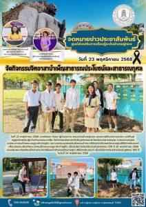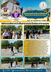 นางชิดชนก กังแฮ ผู้อำนวยการ สกร.ระดับอำเภออู่ทอง มอบหมายให้ ครูศูนย์การเรียนรู้ จัดกิจกรรมจิตอาสาบำเพ็ญสาธารณประโยชน์และสาธารณกุศล ถวายพระราชกุศลแด่พระบาทสมเด็จพระมงกุฎเกล้าเจ้าอยู่หัว และถวายพระกุศลแด่สมเด็จพระเจ้าพระภคินีเธอเจ้าฟ้าเพชรรัตนราชสุดาสิริโสภาพัณณวดี เพื่อเฉลิมพระเกียรติพระบาทสมเด็จพระมงกุฎเกล้าเจ้าอยู่หัว เนื่องในโอกาสวันคล้ายวันสวรรคตครบ 100 ปี 25 พฤศจิกายน 2568 และเฉลิมพระเกียรติสมเด็จเจ้าพระเจ้าภคินีเธอเจ้าฟ้าเพชรรัตนราชสุดา สิริโสภาพัณณวดี เนื่องในโอกาสวันคล้ายวันประสูติครบ 100 ปี ในวันที่ 21-24 พฤศจิกายน 2568 ณ ศูนย์การเรียนรู้ระดับตำบล อำเภออู่ทอง จังหวัดสุพรรณบุรี