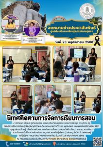 นางชิดชนก กังแฮ ผู้อำนวยการ สกร.ระดับอำเภออู่ทอง นางสาวปิยะนุช ศรนุวัตร ครู นิเทศการจัดการเรียนรู้เพื่อคุณวุฒิตามระดับ ของนางสาวทิวาพร มูลละออง และนางสาววชิราภรณ์ ปิลา ครูศูนย์การเรียนรู้ เพื่อนิเทศติดตามการจัดการเรียนการสอน ให้คำปรึกษา แนะแนวการศึกษา รวมถึงการเข้าใช้แอปพลิเคชันระบบดูแลช่วยเหลือผู้เรียน (Uthong DO-LE Learner) แก่ผู้เรียน ศกร.ระดับตำบลพลับพลาไชย ในวันที่ 23 พฤศจิกายน 2568 ณ ศูนย์การเรียนรู้ระดับตำบลพลับพลาไชย อำเภออู่ทอง จังหวัดสุพรรณบุรี