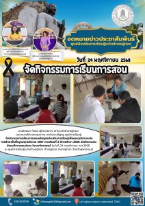 นายกฤษดากร เหล่าประเสริฐครู ศูนย์การเรียนรู้ จัดกิจกรรมการเรียนการสอนหลักสูตรส่งเสริมการเรียนรู้เพื่อคุณวุฒิตามระดับการศึกษาขั้นพื้นฐานพุทธศักราช 2567 ภาคเรียนที่ 2 ปีการศึกษา 2568