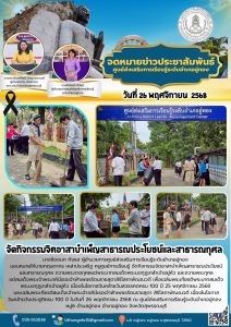 นางชิดชนก กังแฮ ผู้อำนวยการศูนย์ส่งเสริมการเรียนรู้ระดับอำเภออู่ทอง มอบหมายให้นายกฤษดากร เหล่าประเสริฐ ครูศูนย์การเรียนรู้ จัดกิจกรรมจิตอาสาบำเพ็ญสาธารณประโยชน์และสาธารณกุศล ถวายพระราชกุศลแด่พระบาทสมเด็จพระมงกุฎเกล้าเจ้าอยู่หัว และถวายพระกุศลแด่สมเด็จพระเจ้าพระภคินีเธอเจ้าฟ้าเพชรรัตนราชสุดาสิริโสภาพัณณวดี เพื่อเฉลิมพระเกียรติพระบาทสมเด็จพระมงกุฎเกล้าเจ้าอยู่หัว เนื่องในโอกาสวันคล้ายวันสวรรคตครบ 100 ปี 25 พฤศจิกายน 2568 และเฉลิมพระเกียรติสมเด็จเจ้าพระเจ้าภคินีเธอเจ้าฟ้าเพชรรัตนราชสุดา สิริโสภาพัณณวดี เนื่องในโอกาสวันคล้ายวันประสูติครบ 100 ปี ในวันที่ 26 พฤศจิกายน 2568 ณ ศูนย์ส่งเสริมการเรียนรู้ระดับอำเภออู่ทอง หมู่6 ตำบลอู่ทอง อำเภออู่ทอง จังหวัดสุพรรณบุรี