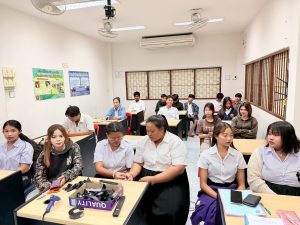 นายสิริวัฒน์ คำประเสริฐ ครูศูนย์การเรียนรู้ จัดกิจกรรมการทำโบว์ริบบิ้นไว้อาลัย