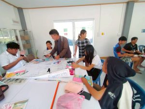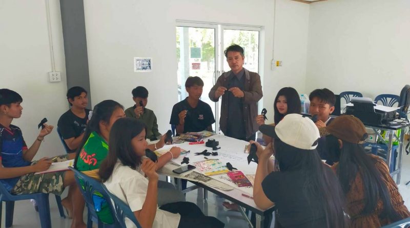 นายสมศักดิ์ ทองแถม ครูศูนย์การเรียนรู้ จัดกิจกรรมส่งเสริมการอ่านเคลื่อนที่ กิจกรรมส่งเสริมการเรียนรู้สร้างสรรค์ การจัดทำงานประดิษฐ์ “ริบบิ้นสีดำ” ติดเสื้อเพื่อแสดงความอาลัย