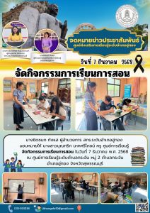 นางชิดชนก กังแฮ ผู้อำนวยการศูนย์ส่งเสริมการเรียนรู้ระดับอำเภออู่ทอง มอบหมายให้ นางสาวบุณฑริก นาคศรีโภชน์ ครู ศูนย์การเรียนรู้ จัดกิจกรรมการเรียนการสอน ในวันที่ 7 ธันวาคม พ.ศ. 2568 ณ ศูนย์การเรียนรู้ระดับตำบลกระจัน หมู่ 2 ตำบลกระจัน อำเภออู่ทอง จังหวัดสุพรรณบุรี