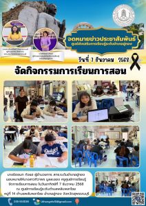 นางชิดชนก กังแฮ ผู้อำนวยการ สกร.ระดับอำเภออู่ทอง มอบหมายให้นางสาวทิวาพร มูลละออง ครูศูนย์การเรียนรู้ จัดการเรียนการสอน ในวันอาทิตย์ที่ 7 ธันวาคม 2568 ณ ศูนย์การเรียนรู้ระดับตำบลพลับพลาไชย หมู่ที่ 14 ตำบลพลับพลาไชย อำเภออู่ทอง จังหวัดสุพรรณบุรี