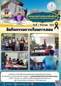 นางชิดชนก กังแฮ ผู้อำนวยการศูนย์ส่งเสริมการเรียนรู้ระดับอำเภออู่ทอง มอบหมายให้ นางสาวธัญญลักษณ์ อนันต์สุข ครู ศูนย์การเรียนรู้ จัดกิจกรรมการเรียนการสอน ในวันที่ 7 ธันวาคม พ.ศ. 2568 ณ ศูนย์การเรียนรู้ระดับตำบลสระพังลาน หมู่3 ตำบลสระพังลาน อำเภออู่ทอง จังหวัดสุพรรณบุรี