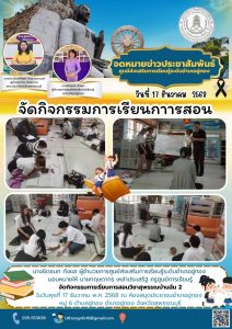 นางชิดชนก กังแฮ ผู้อำนวยการศูนย์ส่งเสริมการเรียนรู้ระดับอำเภออู่ทอง มอบหมายให้ นายกฤษดากร เหล่าประเสริฐ ครูศูนย์การเรียนรู้ จัดกิจกรรมการเรียนการสอนวิชาสุพรรณบ้านฉัน 2 ในวันพุธที่ 17 ธันวาคม พ.ศ. 2568 ณ ห้องสมุดประชาชนอำเภออู่ทอง หมู่ 6 ตำบลอู่ทอง อำเภออู่ทอง จังหวัดสุพรรณบุรี