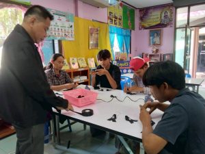 นายพิชิต ศรีคำแหง ครู ศกร.ตำบลเจดีย์ จัดกิจกรรมการเรียนการสอน ทำโบว์ริบบิ้นน้อมรำลึก