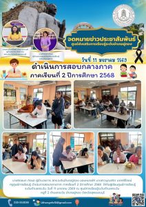 มอบหมายให้ นางสาวบุณฑริก นาคศรีโภชน์ ครูศูนย์การเรียนรู้ ดำเนินการสอบกลางภาค ภาคเรียนที่ 2 ปีการศึกษา 2568 ให้กับผู้เรียนศูนย์การเรียนรู้ระดับตำบลกระจัน วันที่ 11 มกราคม 2569 ณ ศูนย์การเรียนรู้ระดับตำบลกระจัน หมู่ที่ 2 ตำบลกระจัน อำเภออู่ทอง จังหวัดสุพรรณบุรี