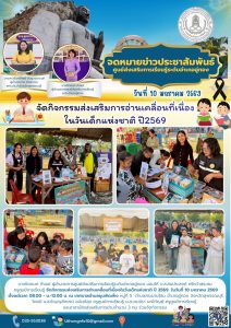 จัดกิจกรรมส่งเสริมการอ่านเคลื่อนที่เนื่องในวันเด็กแห่งชาติ ปี2569 ในวันที่ 10 มกราคม 2569 ตั้งแต่เวลา 08.00 – น.-12.00 น. ณ เทศบาลตำบลขุนพัดเพ็ง หมู่ที่ 5 ตำบลสระยายโสม อำเภออู่ทอง จังหวัดสุพรรณบุรี