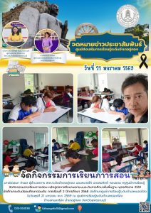 มอบหมายให้ นายสมศักดิ์ ทองแถม ครูศูนย์การเรียนรู้ จัดกิจกรรมการเรียนกาารสอน หลักสูตรการศึกษานอกระบบระดับการศึกษาขั้นพื้นฐาน พุทธศักราช 2551 นักศึกษาระดับมัธยมศึกษาตอนต้น ภาคเรียนที่ 2 ปีการศึกษา 2568 นักศึกษาศูนย์การเรียนรู้ระดับตำบลหนองโอ่ง (วันพุธ) ในวันที่ 21 มกราคม พ.ศ. 2569 ณ ศูนย์การเรียนรู้ระดับตำบลหนองโอ่ง ตำบลหนองโอ่ง อำเภออู่ทอง จังหวัดสุพรรณบุรี