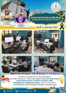 นางชิดชนก กังแฮ ผู้อำนวยการ สกร.ระดับอำเภออู่ทอง มอบหมายให้ นายกฤษดากร เหล่าประเสริฐ ครูศูนย์การเรียนรู้ จัดการเรียนการสอน ระดับมัธยมศึกษาตอนปลาย ภาคเรียนที่ 2 ปีการศึกษา 2568 ให้กับผู้เรียนศูนย์การเรียนรู้ระดับตำบลอู่ทอง วันที่ 27 มกราคม 2569 ณ ห้องดิจิทัลชุมชน หมู่ที่ 6 ตำบลอู่ทอง อำเภออู่ทอง จังหวัดสุพรรณบุรี