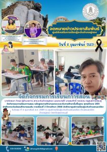 มอบหมายให้ นายสมศักดิ์ ทองแถม ครูศูนย์การเรียนรู้ จัดกิจกรรมการเรียนการสอน หลักสูตรการศึกษานอกระบบระดับการศึกษาขั้นพื้นฐาน พุทธศักราช 2551 นักศึกษาระดับมัธยมศึกษาตอนต้น ภาคเรียนที่ 2 ปีการศึกษา 2568 นักศึกษาศูนย์การเรียนรู้ระดับตำบลหนองโอ่ง (วันพุธ) ในวันที่ 4 กุมภาพันธ์ พ.ศ. 2569 ณ ศูนย์การเรียนรู้ระดับตำบลหนองโอ่ง ตำบลหนองโอ่ง อำเภออู่ทอง จังหวัดสุพรรณบุรี