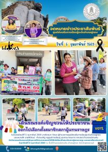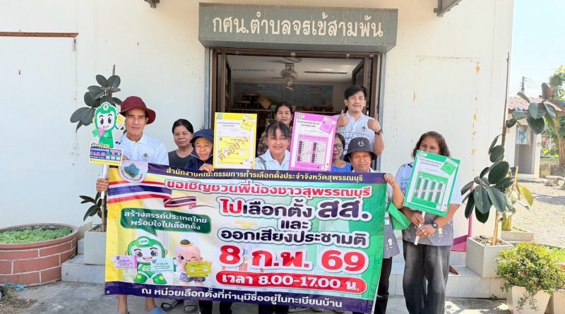 จัดกิจกรรมเดินรณรงค์เชิญชวนให้ประชาชนออกไปใช้สิทธิเลือกตั้งสมาชิกสภาผู้แทนราษฎร และออกเสียงประชามติ วันอาทิตย์ที่ 8 กุมภาพันธ์ 2569 ณ พื้นที่ตำบลจรเข้สามพัน อำเภออู่ทอง จังหวัดสุพรรณบุรี