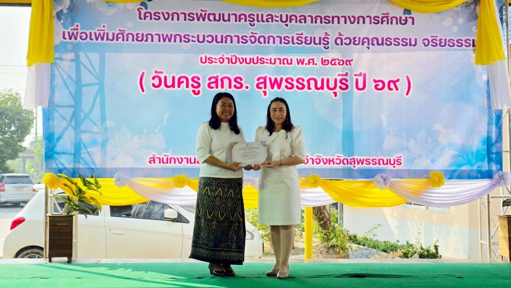 วันที่ 16 มกราคม 2569 นางปกาวรรณ เทียบฤทธิ์ ผอ. สกร.ระดับอำเภอเมืองสุพรรณบุรี รักษาการในตำแหน่ง ผอ. สกร.ระดับอำเภอบางปลาม้า และบุคลากรในสังกัด เข้าร่วมโครงการพัฒนาครูและบุคลากรทางการศึกษา เพื่อเพิ่มศักยภาพกระบวนการจัดการเรียนรู้ ด้วยคุณธรรม จริยธรรม ประจำปีงบประมาณ พ.ศ.2569 ณ สกร.ประจำจังหวัดสุพรรณบุรี อำเภอเมืองสุพรรณบุรี จังหวัดสุพรรณบุรี