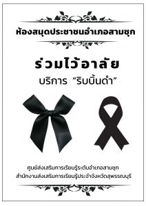 ขอเชิญชวนท่านที่สนใจร่วมกิจกรรมประดิษฐ์ “โบว์หรือริบบิ้นสีดำ” ติดเสื้อ เพื่อแสดงความอาลัยแด่ สมเด็จพระนางเจ้าสิริกิติ์ พระบรมราชินีนาถ พระบรมราชชนนีพันปีหลวง ด้วยสำนึกในพระมหากรุณาธิคุณอย่างหาที่สุดมิได้