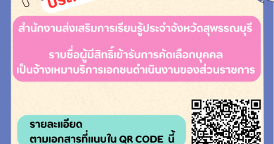 ณ สำนักงานส่งเสริมการเรียนรู้ประจำจังหวัดสุพรรณบุรี