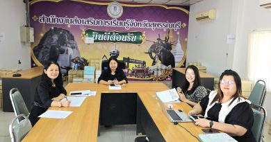 วันที่ ๒๔ มีนาคม ๒๕๖๘ นางสาวจันทร์ทิพย์ สินธุวงษานนท์ ผู้อำนวยการสำนักงานส่งเสริมการเรียนรู้ประจำจังหวัดสุพรรณบุรี พร้อมด้วยนายภูริพัฒน์ ศรีแจ่ม รองผู้อำนวยการสำนักงานส่งเสริมการเรียนรู้ประจำจังหวัดสุพรรณบุรี และบุคลากร จัดกิจกรรมหน้าเสาธง เพื่อเทิดทูนต่อสถาบันชาติ ศาสนา และพระมหากษัตริย์ ณ บริเวณหน้าเสาธง สำนักงานส่งเสริมการเรียนรู้ประจำจังหวัดสุพรรณบุรี โดยเคารพธงชาติทุกวันจันทร์ และสวดมนต์ ไหว้พระ เพื่อให้จิตใจสงบสุข มีสติ สมาธิ เสริมความเป็นสิริมงคล พร้อมทำงานให้เกิดประสิทธิภาพต่อไป