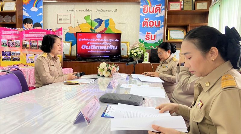 วันที่ ๒๒ กันยายน ๒๕๖๘ นางสาวจันทร์ทิพย์ สินธุวงษานนท์ ผู้อำนวยการสำนักงานส่งเสริมการเรียนรู้ประจำจังหวัดสุพรรณบุรี พร้อมด้วยนายภูริพัฒน์ ศรีแจ่ม รองผู้อำนวยการสำนักงานส่งเสริมการเรียนรู้ประจำจังหวัดสุพรรณบุรี และคณะ ประเมินสัมฤทธิผลการปฏิบัติงานในหน้าที่ผู้อำนวยการสถานศึกษาของนางสาวจันทวรรณ พันมูล ผู้อำนวยการศูนย์ส่งเสริมการเรียนรู้ระดับอำเภอสองพี่น้อง ณ ศูนย์ส่งเสริมการเรียนรู้ระดับอำเภอสองพี่น้อง อำเภอสองพี่น้อง จังหวัดสุพรรณบุรี