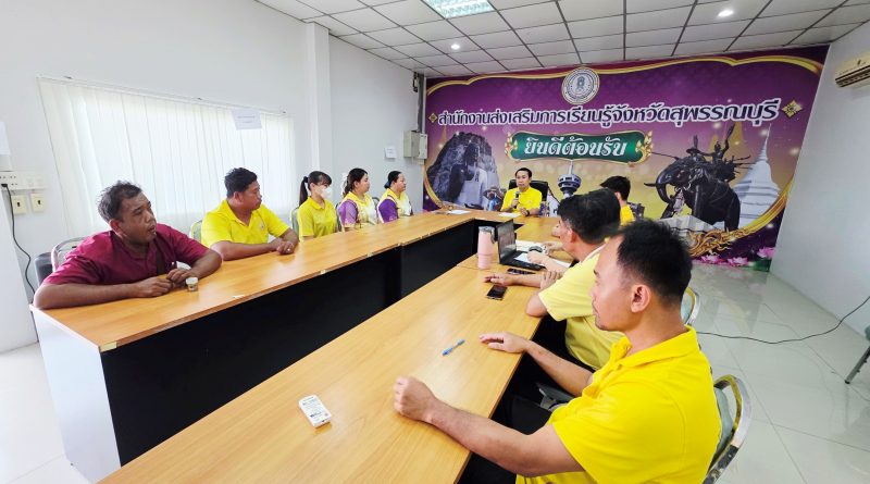 วันที่ ๒๓ กันยายน ๒๕๖๘ นางสาวจันทร์ทิพย์ สินธุวงษานนท์ ผู้อำนวยการสำนักงานส่งเสริมการเรียนรู้ประจำจังหวัดสุพรรณบุรี มอบหมายให้นายภูริพัฒน์ ศรีแจ่ม รองผู้อำนวยการสำนักงานส่งเสริมการเรียนรู้ประจำจังหวัดสุพรรณบุรี พร้อมคณะ ประเมินพนักงานจ้างเหมาบริการของสำนักงานส่งเสริมการเรียนรู้ประจำจังหวัดสุพรรณบุรี ณ ห้องประชุมสำนักงานส่งเสริมการเรียนรู้ประจำจังหวัดสุพรรณบุรี