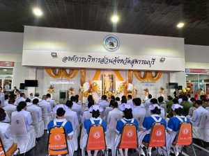 วันที่ ๑๓ ตุลาคม ๒๕๖๘ นางสาวจันทร์ทิพย์ สินธุวงษานนท์ ผู้อำนวยการสำนักงานส่งเสริมการเรียนรู้ประจำจังหวัดสุพรรณบุรี และบุคลากรในสังกัด เข้าร่วมพิธีสวดพระพุทธมนต์ ทำบุญตักบาตรถวายพระราชกุศล และพิธีวางพวงมาลาถวายราชดุดี แด่พระบาทสมเด็จพระบรมชนกาธิเบศร มหาภูมิพลอดุลยเดชมหาราช บรมนาถบพิตร เนื่องในวันนวมินทรมหาราช ๑๓ ตุลาคม ๒๕๖๘ ณ บริเวณด้านหน้าห้องประชุมองค์การบริหารส่วนจังหวัดสุพรรณบุรี โดยมี นายพิริยะ ฉันทดิลก ผู้ว่าราชการจังหวัดสุพรรณบุรี เป็นประธาน