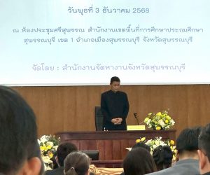 วันที่ ๓ ธันวาคม ๒๕๖๘ นางสาวจันทร์ทิพย์ สินธุวงษานนท์ ผู้อำนวยการสำนักงานส่งเสริมการเรียนรู้ประจำจังหวัดสุพรรณบุรี มอบหมายให้นายเดชาวัต ยอดมีกลิ่น นักวิชาการศึกษา พร้อมด้วยข้าราชครูเเละบุคลากรในสังกัดทั้ง ๑๐ เเห่ง เข้าร่วมประชุมชี้เเจงโครงการเพิ่มทักษะด้านอาชีพ เเก่นักเรียน ที่ไม่ได้เรียนต่อหลังจบการศึกษาภาคบังคับ ประจำปีงบประมาณ พ.ศ.๒๕๖๙ เพื่อสร้างการรับรู้ เเละสร้างความเข้าใจให้เเก่ผู้บริหารสถานศึกษา ครูเเนะเเนว เกี่ยวกับวัตถุประสงค์ ขั้นตอนการดำเนินงาน เเละปฏิทินการปฏิบัติงาน ณ ห้องประชุมศรีสุพรรณ สำนักงานเขตพื้นที่การศึกษาปฐมศึกษา เขต ๑ โดยมีนายกองเอกเชษฐา ขาวประเสริฐ รองผู้ว่าราชการจังหวัดสุพรรณบุรี เป็นประธาน