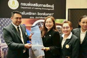 วันที่ ๘ ธันวาคม ๒๕๖๘ นางสาวจันทร์ทิพย์ สินธุวงษานนท์ ผู้อำนวยการสำนักงานส่งเสริมการเรียนรู้ประจำจังหวัดสุพรรณบุรี มอบหมายให้นางรุ่งนภา แย้มอุทัย ครู ศูนย์ส่งเสริมการเรียนรู้ระดับอำเภอสองพี่น้อง รักษาการในตำแหน่งผู้อำนวยการศูนย์ส่งเสริมการเรียนรู้ระดับอำเภอดอนเจดีย์ และนางสาวสรัญญา บู้ช้วน นักวิเคราะห์นโยบายและแผน เข้าร่วมพิธีลงนามบันทึกข้อตกลงความเข้าใจ (MOU) โครงการพัฒนายกระดับครูกรมส่งเสริมการเรียนรู้สู่ครูนวัตกร เพื่อการพัฒนาเศรษฐกิจฐานราก ด้วยการอุดมศึกษา วิทยาศาสตร์ วิจัยและนวัตกรรม ระหว่างสำนักงานปลัดกระทรวงการอุดมศึกษาวิทยาศาสตร์ วิจัยและนวัตกรรม และกรมส่งเสริมการเรียนรู้ ณ ห้องอินฟินิตี้ บอลรูม โรงแรม คิงพาวเวอร์ รางน้ำ กรุงเทพมหานคร