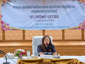 วันที่ ๑๓ – ๑๔ ธันวาคม ๒๕๖๘ นางสาวจันทร์ทิพย์ สินธุวงษานนท์ ผู้อำนวยการสำนักงานส่งเสริมการเรียนรู้ประจำจังหวัดสุพรรณบุรี พร้อมด้วยนางสาวนัดธิดา หล้าอามาตย์ ครู รักษาการในตำแหน่งผู้อำนวยการศูนย์ส่งเสริมการเรียนรู้ระดับอำเภอด่านช้าง เเละนายเดชาวัต ยอดมีกลิ่น นักวิชาการศึกษา เข้าร่วมกิจกรรมส่งเสริมการเรียนรู้เเละให้กำลังใจบุคลากร ผู้เรียน ประชาชน เเละผู้อพยพ จากสถานการณ์ความไม่สงบชายเเดนไทย – กัมพูชา นำสิ่งของอุปโภคบริโภค ข้าวสารอาหารเเห้งเเละสิ่งของอื่นที่จำเป็น “รวมธารน้ำใจ สู่ชายเเดน” จากภาคีเครือข่าย เเละผู้บริหารเเละบุคลากรในสถานศึกษาทั้ง ๑๐ เเห่ง เพื่อไปช่วยเหลือและให้กำลังใจผู้ที่ได้รับผลกระทบจากเหตุการณ์ความไม่สงบที่ศูนย์อพยพและศูนย์พักพิงตามจุดต่าง ๆ ในจังหวัดศรีสะเกษ เเละจังหวัดสุรินทร์ การลงพื้นที่ในครั้งนี้ นำโดย ดร.เกศทิพย์ ศุภวานิช อธิบดีกรมส่งเสริมการเรียนรู้ พร้อมด้วยผู้บริหารสำนักงานส่งเสริมการเรียนรู้ประจำจังหวัดหลายเเห่ง