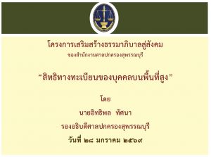 วันที่ ๒๘ มกราคม ๒๕๖๙ นางสาวจันทร์ทิพย์ สินธุวงษานนท์ ผู้อำนวยการสำนักงานส่งเสริมการเรียนรู้ประจำจังหวัดสุพรรณบุรี มอบหมายให้นายณภพ เพ็ชรรัตน์ เข้าร่วมการอบรมโครงการเสริมสร้างธรรมาภิบาลสู่สังคมของสำนักงานศาลปกครองสุพรรณบุรี ประจำปีงบประมาณ พ.ศ.๒๕๖๙ ครั้งที่ ๑ ณ สำนักงานส่งเสริมการเรียนรู้ประจำจังหวัดสุพรรณบุรี ผ่านช่องทางระบบออนไลน์ โปรแกรม Cisco Webex Meetings โดยมี นายวุฒิชัย แสงสำราญ อธิบดีศาลปกครองสุพรรณบุรี เป็นประธาน