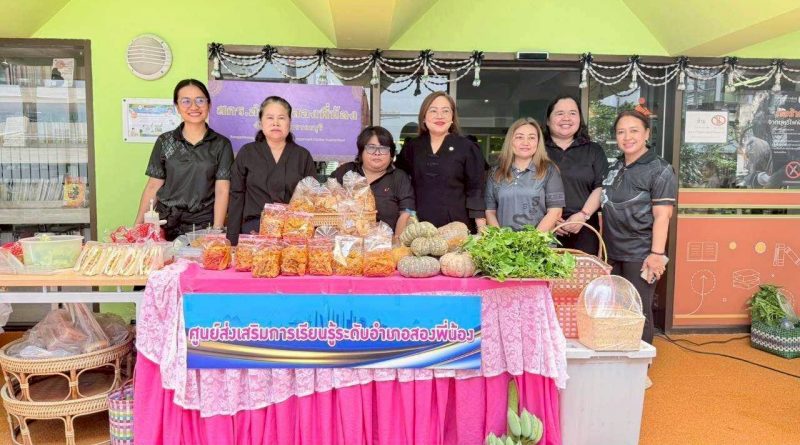 วันที่ ๑๘ กุมภาพันธ์ ๒๕๖๙ นางสาวจันทร์ทิพย์ สินธุวงษานนท์ ผู้อำนวยการสำนักงานส่งเสริมการเรียนรู้ประจำจังหวัดสุพรรณบุรี มอบบหมายให้นางสาวจันทวรรณ พันมูล ผู้อำนวยการศูนย์ส่งเสริมการเรียนรู้ระดับอำเภอสองพี่น้อง และบุคลากรในสังกัด เข้าร่วมจัดกิจกรรม “ชม ชิม ช้อป” ส่งเสริมการเรียนรู้จากผลิตภัณฑ์ชุมชน กรมส่งเสริมการเรียนรู้ ณ ศูนย์การเรียนรู้วังจันทรเกษม กระทรวงศึกษาธิการ โดยนำผลิตภัณฑ์ต่าง ๆ ร่วมจัดแสดงเเละจัดจำหน่ายรวมไปถึงการสาธิตให้ความรู้วิธีการทำ “การทำแซนวิชเพื่อสุขภาพ” เพื่อเป็นการเผยเเพร่ทักษะอาชีพให้แก่นักเรียน เเละประชาชนที่สนใจ เพื่อนำความรู้ ทักษะที่ได้ไปประยุกต์ใช้ในการประกอบอาชีพ ทั้งนี้ได้รับเกียรติจาก ดร.เกศทิพย์ ศุภวานิช อธิบดีกรมส่งเสริมการเรียนรู้ เยี่ยมชม พบปะพูดคุย ให้กำลังใจแก่บุคลากรในสังกัด พร้อมทั้งเลือกซื้อผลิตภัณฑ์ทางการเกษตรปลอดสารพิษ