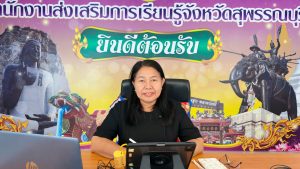 วันที่ ๔ มีนาคม ๒๕๖๙ นางสาวจันทร์ทิพย์ สินธุวงษานนท์ ผู้อำนวยการสำนักงานส่งเสริมการเรียนรู้ประจำจังหวัดสุพรรณบุรี พร้อมด้วยบุคลากรที่เกี่ยวข้อง เข้าร่วมประชุมชี้แจงกรอบการประเมินผลการปฏิบัติราชการระดับหน่วยงานในสังกัดกรมส่งเสริมการเรียนรู้ ประจำปีงบประมาณ พ.ศ.๒๕๖๙ ณ ห้องประชุมสำนักงานส่งเสริมการเรียนรู้ประจำจังหวัดสุพรรณบุรี ผ่านช่องทางระบบออนไลน์ โปรแกรม Zoom และ Facebook page กรมส่งเสริมการเรียนรู้-สกร.