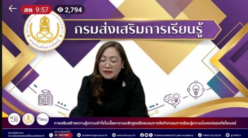 วันที่ ๒๘ เมษายน ๒๕๖๙ นางสาวจันทร์ทิพย์ สินธุวงษานนท์ ผู้อำนวยการสำนักงานส่งเสริมการเรียนรู้ประจำจังหวัดสุพรรณบุรี พร้อมด้วยบุคลากรในสังกัด เข้าร่วมอบรมการเสริมสร้างความรู้ความเข้าใจในเนื้อหาตามหลักสูตรฝึกอบรมการจัดกิจกรรมการเรียนรู้ความมั่นคงปลอดภัยไซเบอร์ ณ สำนักงานส่งเสริมการเรียนรู้ประจำจังหวัดสุพรรณบุรี ผ่านช่องทางระบบออนไลน์โปรแกรม Zoom Meeting Facebook Live และ YouTube โดยมี ดร.เกศทิพย์ ศุภวานิช อธิบดีกรมส่งเสริมการเรียนรู้ เป็นประธาน